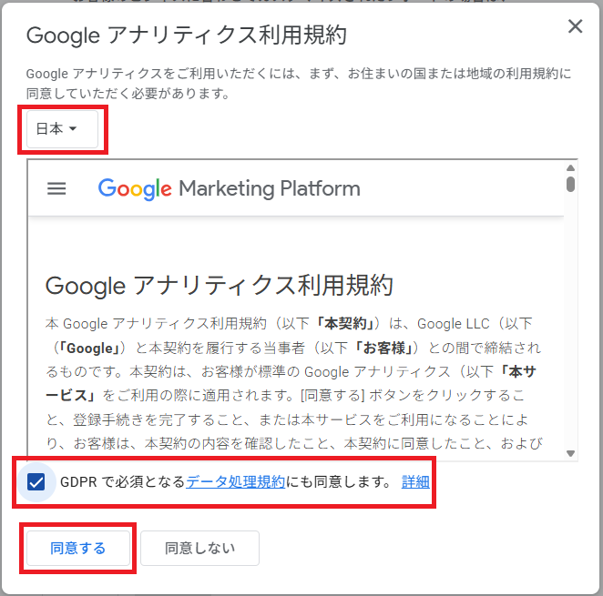 利用規約は「日本」を選択します。