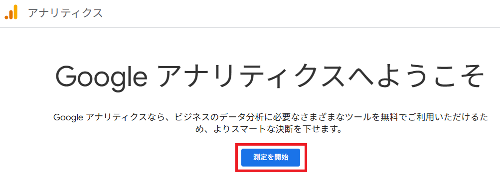 Googleにログインした状態でGoogle Analyticsサイトにアクセスし、[測定を開始]を選択します。