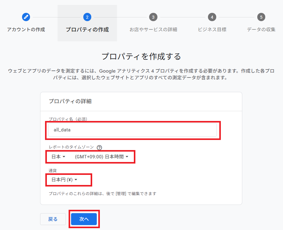 プロパティ名を決めます。私はとりあえず全データを集約しようと思うので「all_data」にしておきます。
