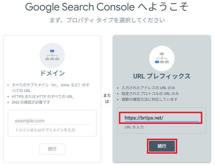 https://からサイトのドメインまでを入力して、[続行]をクリックします。