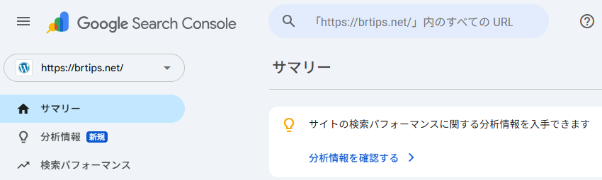 設定後、[完了]をクリックしてからsearch-consoleに移動するか、[プロパティに移動]でGSCの画面を見たときに、画面の左上に設定したURLプレフィックスが表示されていれば完了です。