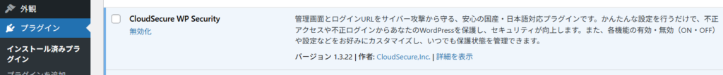 エックスサーバーの場合はデフォルトでCloudSecure WP Securityがインストールされているため、