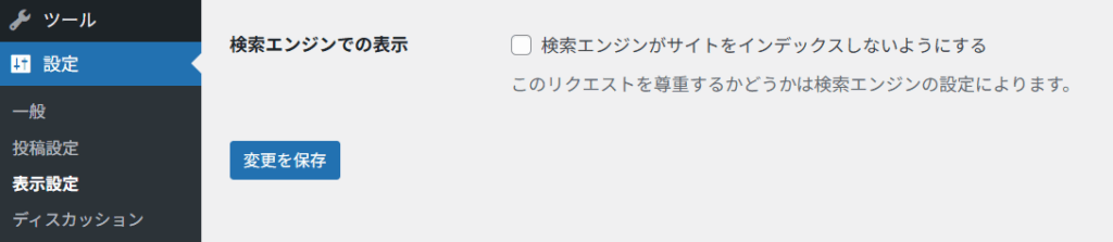 [設定]→[表示設定]→“検索エンジンがサイトをインデックスしないようにする”